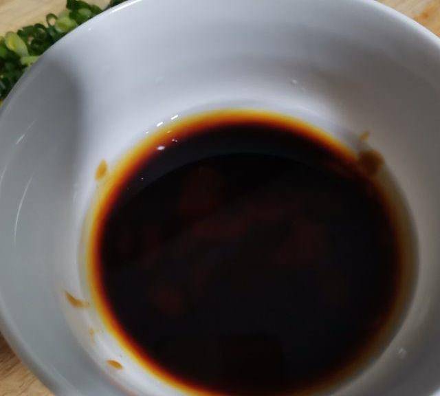 第14步、調味汁:1湯匙蠔油、1湯匙涼開水、2湯匙生抽、0.5湯匙白糖、0.5湯匙香麻油攪拌均勻。