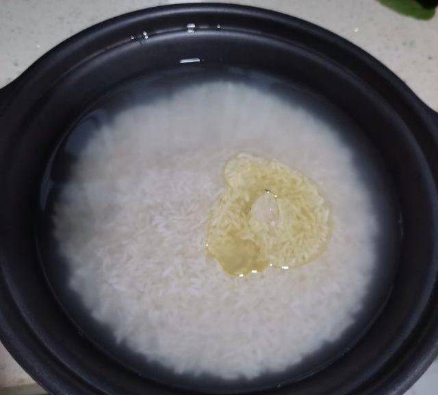 第2步、浸泡好的大米加半勺玉米油拌勻。