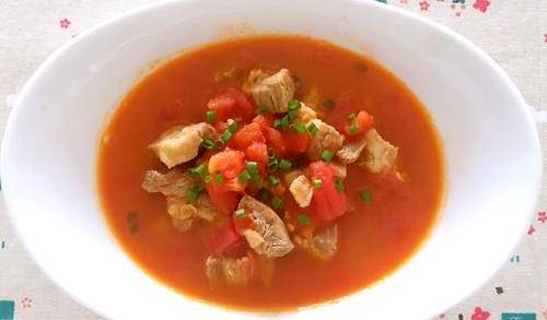 3切小蔥,鍋裡放油,再放蔥花爆香,倒入西紅柿翻炒加白糖待出湯後,放入燉好的牛肉,翻炒一會,把燉牛肉的湯倒入煮開,後加一點鹽即可出鍋,比較喜歡喝湯濃一點的自己加瞭番茄醬顏色也更美!(口味可根據自己喜歡來)