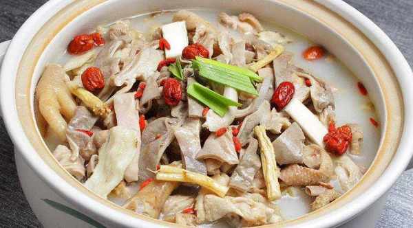 豬肚:1個、雞:一隻、紅棗:適量、枸杞:適量、生薑:適量、胡椒粒:適量、百靈草:適量鹽:適量味精:適量