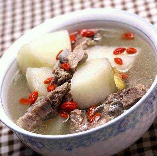 淮山:600克、排骨:400克、薑:3片、枸杞:10克、鹽:適量、醋:適量、水:適量、料酒(可加可不加):適量