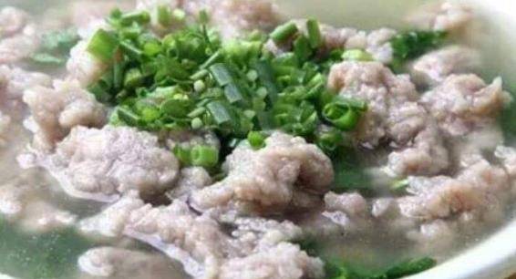 裡脊肉:150g、青菜:250g、淀粉:適量、鹽:適量、雞精:適量、濃湯寶:適量、料酒:適量