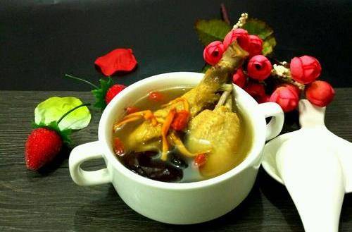 土雞:半邊、蟲草花:15克、紅棗:3粒、無花果:1粒、枸杞:適量、生薑:兩片、水:1200ml鹽:適量