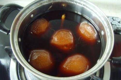 3、梨子整個浸入紅酒中,繼續用小火煮制15分鐘。
