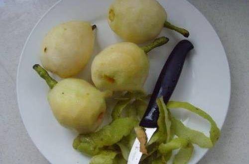 1、雪梨洗凈削掉外皮,從底部取出內核。
