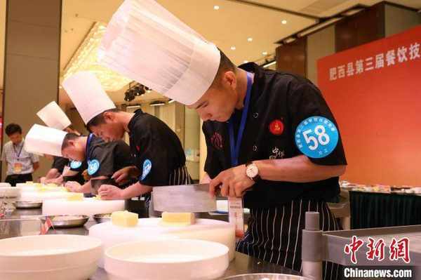當日,來自肥西縣各餐飲行業的廚師、廚藝愛好者共123名選手通過“中式面點、中式烹飪(熱菜)、地方特色菜、營養配餐、刀工”等5個項目開展技能比拼。
