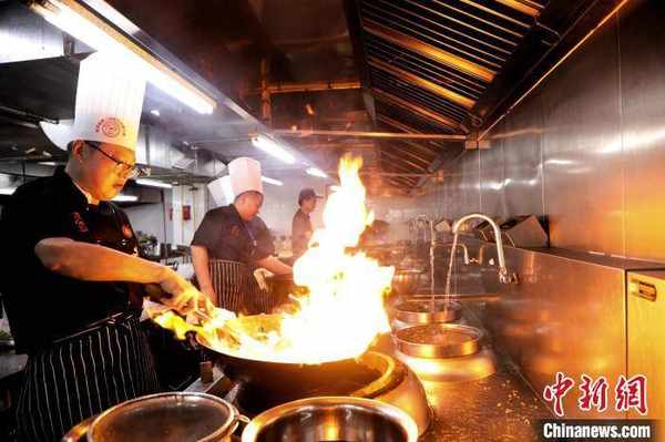 參賽廚師正在進行熱菜技藝比拼。 陳傢樂 攝