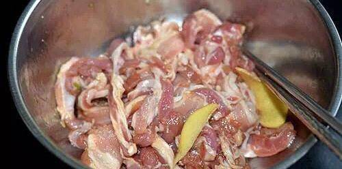 2.肉片中加料酒,生抽,老抽,蠔油,薑片,適量鹽拌勻醃10分鐘。