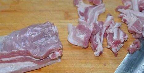 1.先將五花肉洗凈後控幹水份後切成薄片備用。