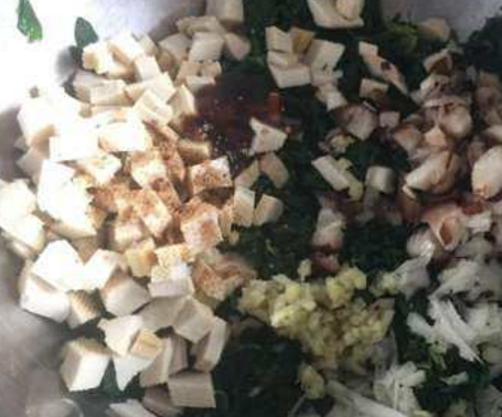 需要準備的食材:香芹、豆腐幹、香菇、面粉、酵母、蔥薑、生抽、香油、鹽、花椒粉、蠔油、香蔥、黑芝麻。