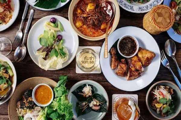 som saa的菜式非常有趣,來自泰國東北部,和我們平時耳熟能詳的泰國菜有所不同。它像一個地道的小型餐吧,自帶小吧臺,菜式沒有過多的擺盤,就像一場豐盛的傢庭聚餐,很有古早的溫馨感。