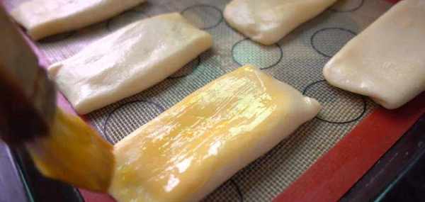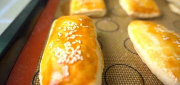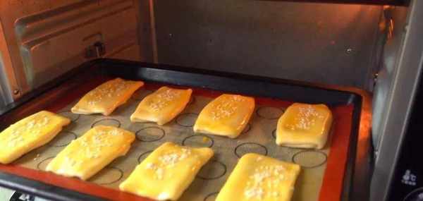 上烤盤,抹蛋黃液,撒白芝麻。