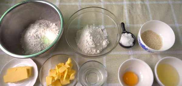 低筋面粉125克(油皮用),低筋面粉75克(油酥用),綿白糖25克,芝麻適量,黃油35克(油酥用),黃油50克(油皮用),清水50克,蛋黃1個