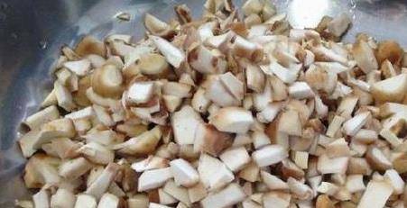第5步,把幹香菇提前泡發,然後洗幹凈切成香菇丁。