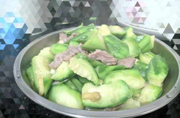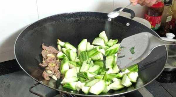 溫馨提示:在炒肉片和絲瓜過程中,如發現粘鍋現象,倒入適量溫開水即可
