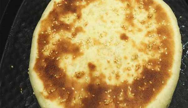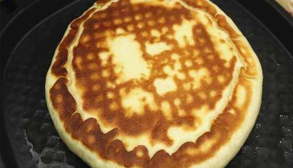 17.餅中間鼓起,兩面金黃就可以出鍋瞭。