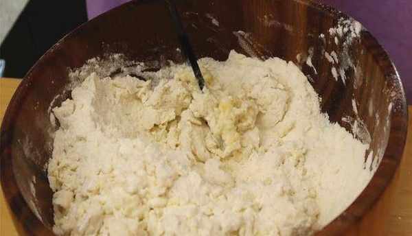 12.餅的邊緣抹上清水,用最外邊的面皮包起來。