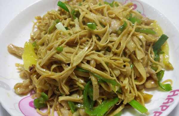 做這道菜我個人有點小小的體會,願意和大傢說說,看對不對啊?我覺得千張一定要切細,很細的千張絲,千張要過水,要不千張會有千張固有的那種千張的醒味。肉絲要炒好,不能太老。當然,炒肉絲也是有訣竅的。肉絲一定要先醃制,這樣做事為瞭讓肉絲更加入味,一定要大火快炒,炒好後立刻出鍋,這樣的口感才會更好。