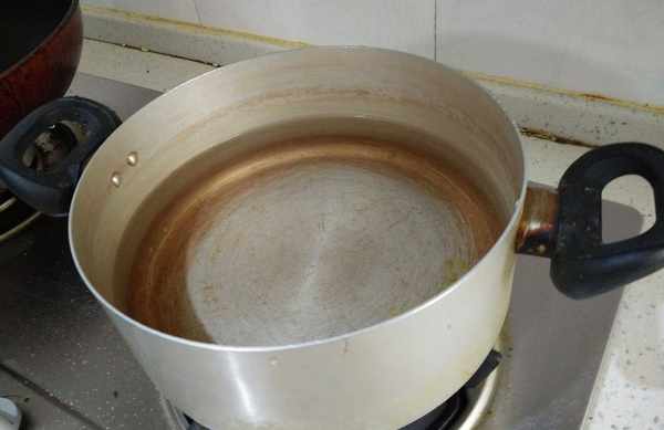 4、千張在鍋中過水,水開後撈起瀝幹待用