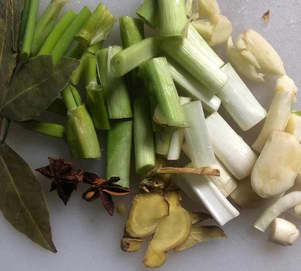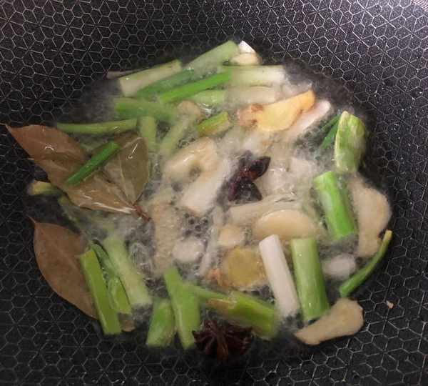 步驟三:起鍋燒油,先把蔥薑蒜八角和香葉放到鍋中翻炒,要讓這些配料的香味給充分的炒出來。