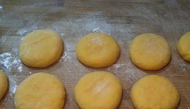 取一個面劑給它整理成圓形,像這樣就可以瞭。剛開始燜一分鐘,翻一面。再翻一面,反復翻面。這樣做的南瓜餅蓬松暄軟好吃,方法也特別的簡單,喜歡的朋友快試一下。
