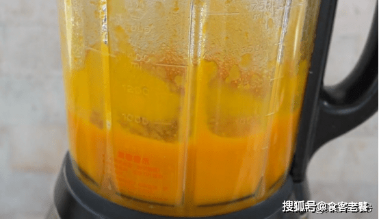準備300克南瓜,切成薄片裝盤,蒸熟後倒入破壁機中加200克清水打成泥。