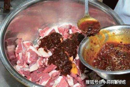 主料要選用寧夏鹽池灘出產的公羊,以喂養270天左右、每隻重量在18千克以下最好,因為這種羊的肉質較為細嫩,而且膻味較少,適宜用來做燒烤。原料:(鹽池灘羊) 羊腿肉500克、燒烤專用料(市場有售) 50克、幹辣椒面40克、熟白芝麻、火辣幹燒醬(市場有售)、蠔油、大蔥段、生薑塊、香葉、胡蘿卜塊、香菜、香芹、花椒、八角、香草粉、鹽、美極牛肉粉、油餅粉末、自制香料油、大豆油各適量雞蛋2個制法:1.準備好自制的醃漬料。往不銹鋼碗裡依次放入火辣幹燒醬、蠔油,磕入雞蛋液,加入適量的自制香料油,攪拌均勻。自制香料油的制作,是往凈鍋裡倒入適量大豆油燒熱,加入大蔥段、生薑塊、香葉、胡蘿卜塊、香菜、香芹、花椒、八角,以中小火熬出香味,打去料渣,便得到(見圖1、圖2)。