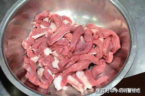 3.加工主料。把鹽池灘羊羊腿肉治凈,先逐一切成大長條,然後逐條切成2.5厘米的正方形小塊,納入盆中待用(見圖4)。
