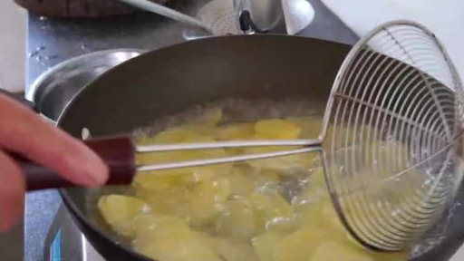 炸至金黃酥脆即可,土豆的邊緣會略微的起酥,時間大概10分鐘左右就可完成。