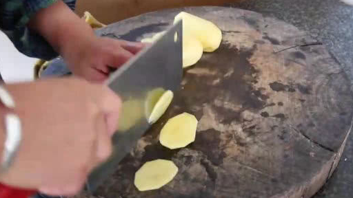 將土豆切成一厘米左右的厚度,大概是一元硬幣的樣子(人民幣)。