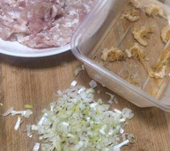 原料:肉碎、蛋、面粉、蔥碎、蝦米、鹽。