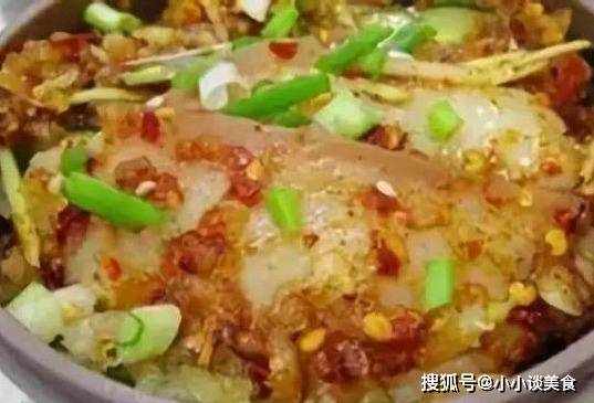 4、將鯢、白糖、味精、山椒水、香油放入碗中,準備山椒醬,淋在盤中的白肉上,盤中淋上蒜油,撒上香菜。