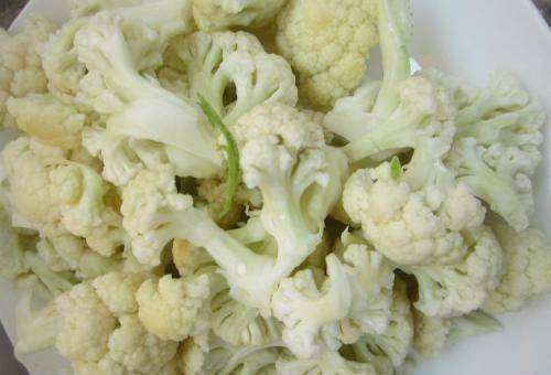 1、先把花菜煮成小塊,然後用足量的水煮開,把花菜煮熟後倒掉備用。