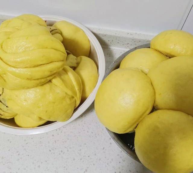 原料:南瓜、面粉、白糖、酵母粉。