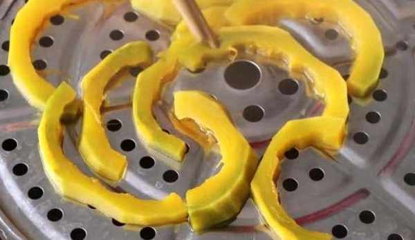 1.將南瓜去皮、去瓤洗凈後,切成小薄片放入鍋中隔水蒸至熟爛。