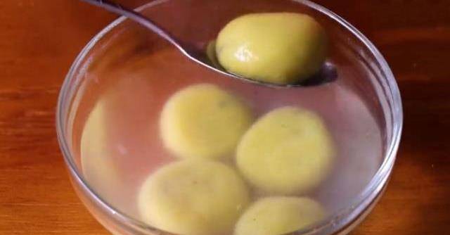 2.蒸至這樣用筷子一紮就透即可盛出放入碗中趁熱碾壓成泥。