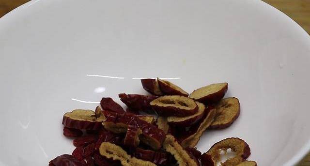 第四步:幾顆紅棗切片,再準備一小把枸杞備用