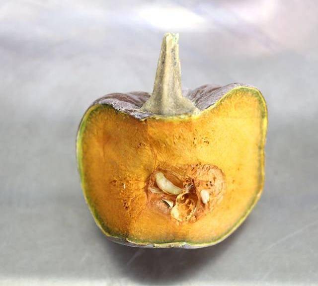 第1步、準備一塊南瓜;南瓜品種很多,甜度和口感各有不同,盡量選擇口感香甜軟糯、顏色金黃的。