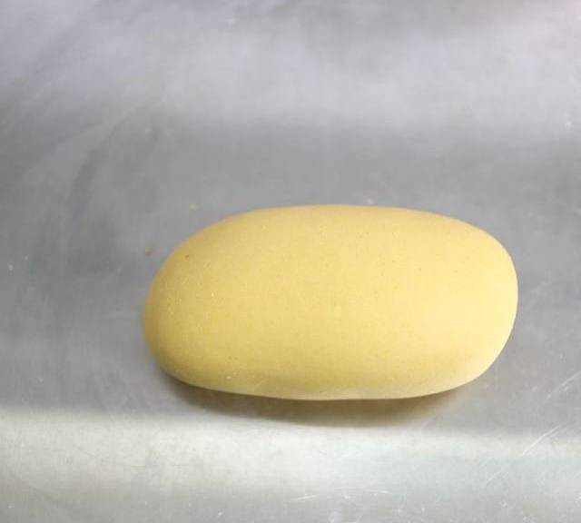 第8步、將面團轉移到案板上,用按壓搓揉的方法將其揉成光滑細致的面團;檢測面團的軟硬度,用手指在表面輕輕按壓一下能留下較淺的指印;面團入盆,蓋上蓋子餳10分鐘。
