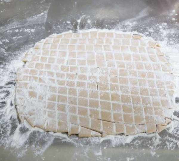 第10步、用刀切成1公分粗的面條,為防止粘連,可撒少許面粉。