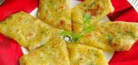 食材用料:面粉、南瓜、香菜、蒜、油、鹽、胡椒面