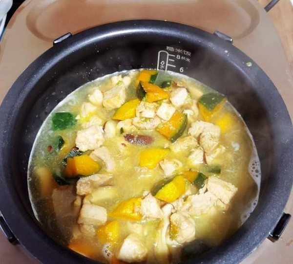 原料:雞胸肉、南瓜、大米、藜麥、大蔥、大蒜、香菇、鹽、清水、橄欖油、生抽、料酒。