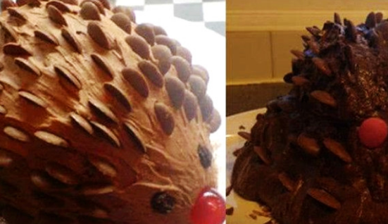 刺蝟蛋糕也是不敢恭維啊,本來是很期待的巧克力蛋糕,造型也很創新可愛,但是實際上的作品就像一攤泥,如果送給人傢當生日蛋糕,人傢能笑的出來嗎?