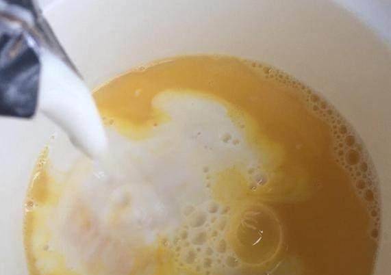 這裡就是很重要的一點瞭,平時我們都是直接加水,但是由於孩子不是很喜歡雞蛋本身的味道,所以老婆用牛奶代替瞭清水,而牛奶的營養價值也會更高一些,同時口感也會更加的潤滑,孩子對這種奶香味也更加能夠接受一些。