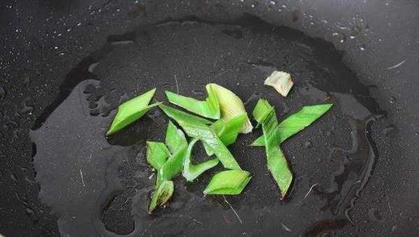 起油鍋以小火爆香蒜苗。