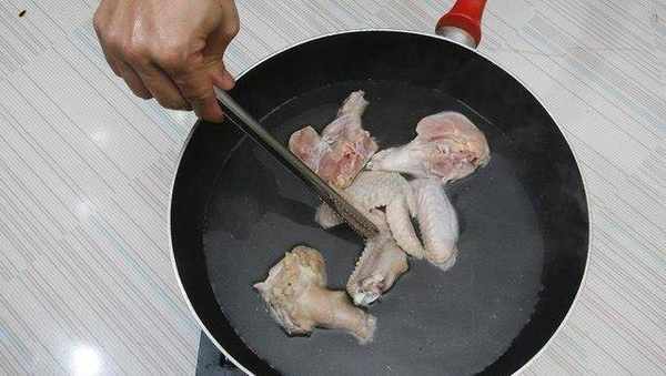 熱鍋煮水,將雞翅或棒棒腿汆燙備用。
