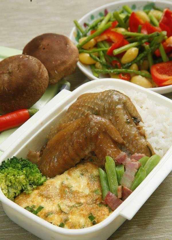 Tips:棒棒腿肉質緊實、雞翅滑嫩帶膠質,兩者紅燒或鹵制風味佳。棒棒腿肉較多,可在表面劃上幾刀方便入味。另因帶紅燒或鹵汁,建議用分層式便當盒將菜、飯分開裝盛,避免飯變濕糊。