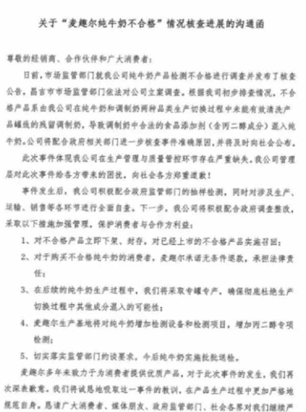 事故是麥趣爾的責任,但是在這起抽樣檢查的事件當中,卻充分證明瞭國傢對乳制品安全乃至食品安全事件的重視。