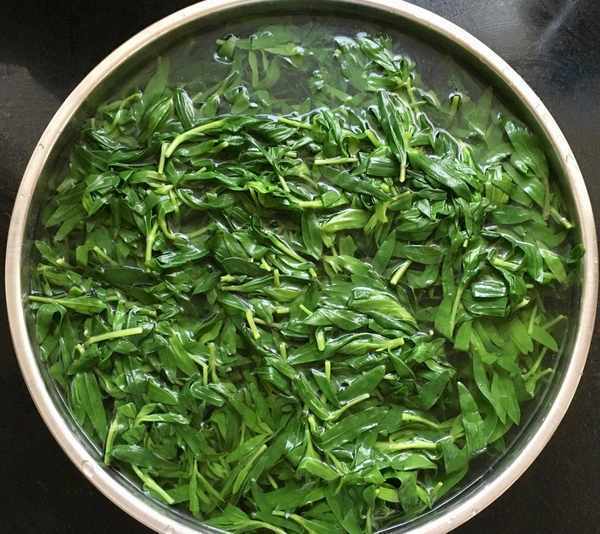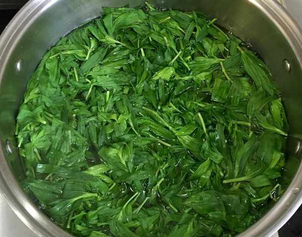 鮮嫩的山麻楂擇洗幹凈後控幹水分,鍋中加水煮沸點幾滴植物油放入山麻楂焯水1分鐘左右,撈出反復過涼水。因為山麻楂微苦澀所以要放入容器中用水浸泡12個小時左右,期間勤換幾次水。