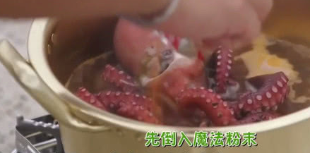 在章魚下去的一分鐘之後,可以看出章魚慢慢地變色,在這個過程就要把調料一起撒下去,對於吃過的人也會很向往。看到熟的章魚簡直是太美味瞭,如此新鮮和鮮艷的外觀是隻有在韓國才會吃得到,有的人對這裡面含有的口感也會很好奇,把辛拉面放下去之後,這畫面顯得更上檔次瞭。